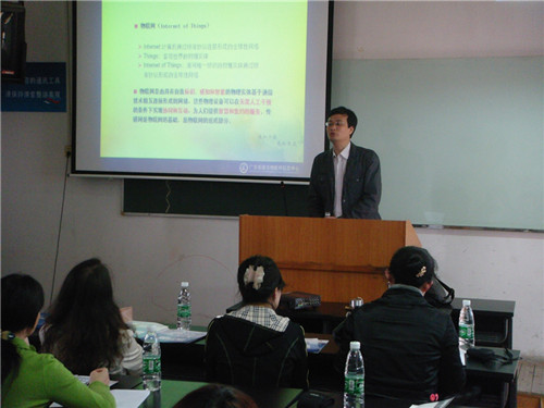 2011年3月3日广东省物流行业协会、广东省南方物联网信息中心童文强主任一行受邀来我院进行物联网专题讲座,童主任物联网内涵,物联网技术,物联网应用,物联网最新发展状况一一做了介绍。物流管理专业教研室全体教师参与讲座,并与童主任一行共同对物联网在教学,特别是实训教学的应用与推广,物联网实训室建设及物联网专业,课程设置等方面进行了深入探讨。