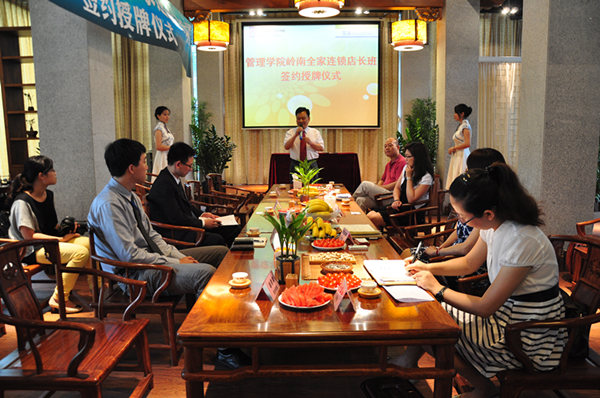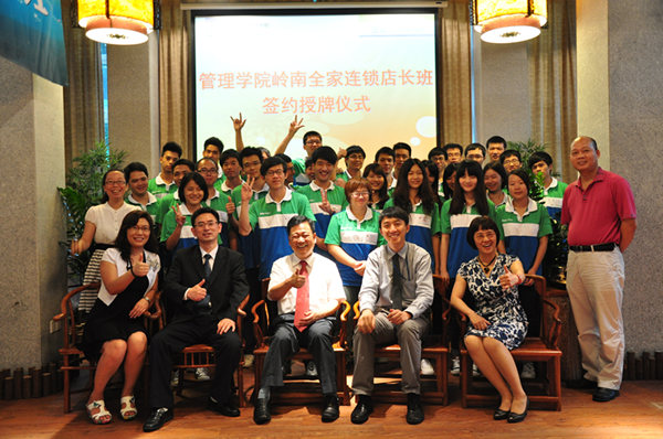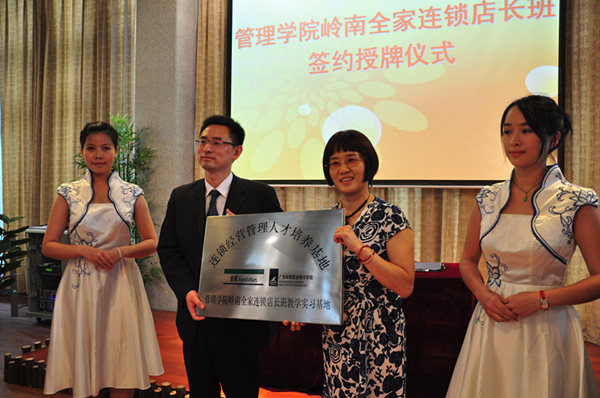 2012年5月18日,管理学院连锁经营管理人才培养基地暨岭南全家连锁店长班合作签约及授牌仪式在岭南茶艺馆隆重举行。