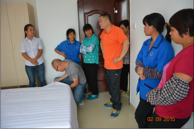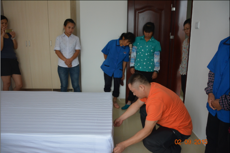 广东岭南职业技术学院经济管理学院校内实训基地之清远凤凰公寓在我校领导的大力支持和协助、酒店管理专业全体老师的积极参与和跟进下已顺利完成其基础设施建设和物资耗材引进工作,于2015年8月,成功组建由王寿轩老师为核心,杨秋玲经理和陈敏经理为领导的凤凰公寓领导班子群体。为了更好的支持凤凰公寓第一批新员工能够达到凤凰公寓制定的标准服务技能和服务流程,2015年9月2日,在酒店管理专业国家一级客房技能培训师胡卫红老师、清远酒店管理专业督导刘斯林老师的指导和协助下,开展了凤凰公寓寓第一批新员工的客房布草整理、公寓物品陈列与客房回执清洁等酒店技能服务培训工作。该培训旨在提高凤凰公寓服务工作人员的服务技能水平,使其能够顺利承担凤凰公寓第一批入住客人的需求。