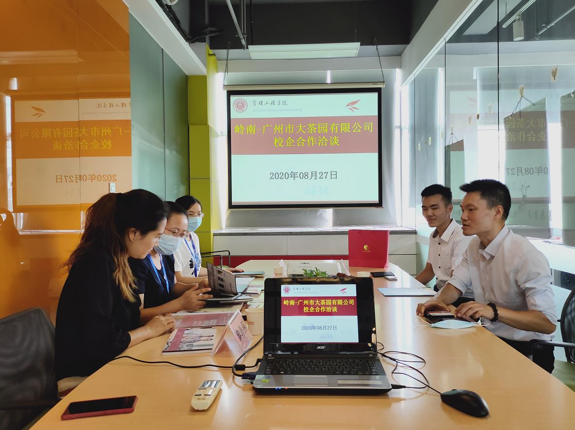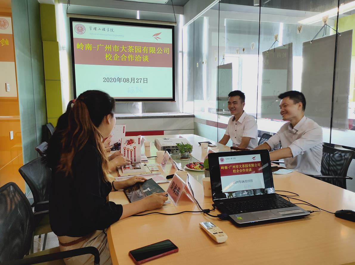 为进一步深化校企合作内涵,拓宽学生实习就业渠道,助推校企人才培养,充分发挥校企双方的优势;2020年8月27日上午9:30,管理工程学院与广州市大茶园茶业有限公司在科技中心C座4楼会议室举行了校企合作洽谈会。广州大茶园茶业有限公司人事总监卢锟凌先生,招聘部经理杨绍涌先生、管理工程学院执行院长翟树芹老师、酒店管理专业黎海燕老师,刘海英老师共同参加了此次会议。