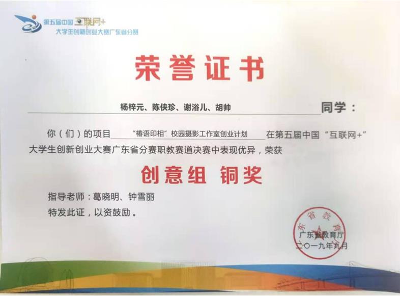 项目小组完成的课程成果将全员参加校内组织的创新创业成果展示大赛,从中选出优秀的作品参加国内相关的创新创业及专业技能竞赛项目,近六年共获得省部级以上策划类竞赛奖励41项,其中参加2019年广东省“互联网+”创新创业大赛荣获铜牌,激发学生的学习积极性。