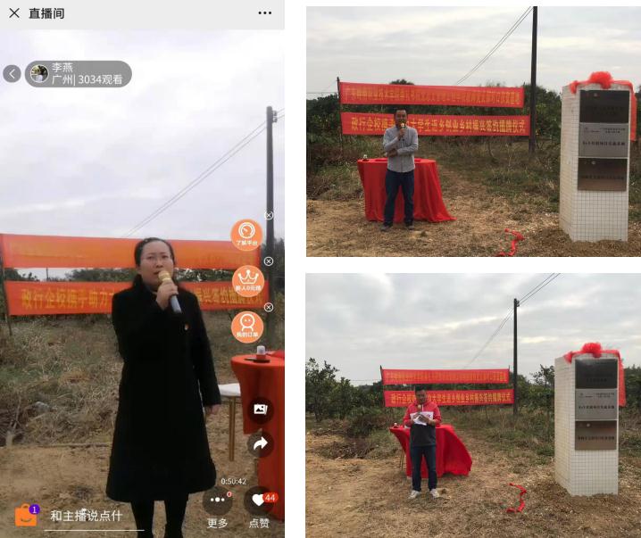 最后,由李燕副书记及广东鲸咖科技有限公司技术人员带领全体出席人员共同为云锋农场直播卖货,直播间最高同时在线人数为3034人。在行企校的共同努力下,本次助力5+3创业团队返乡创业活动当天共帮助企业成功销售2500多斤橙子,成功对接合作企业4家。