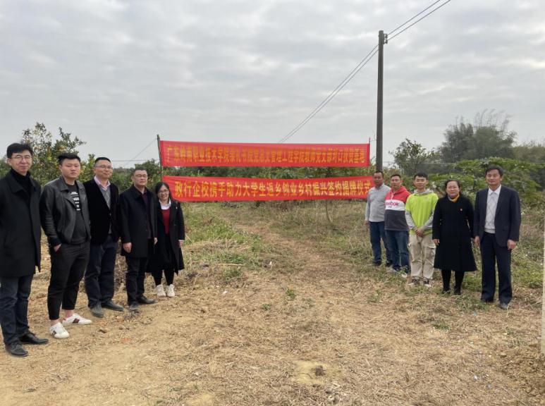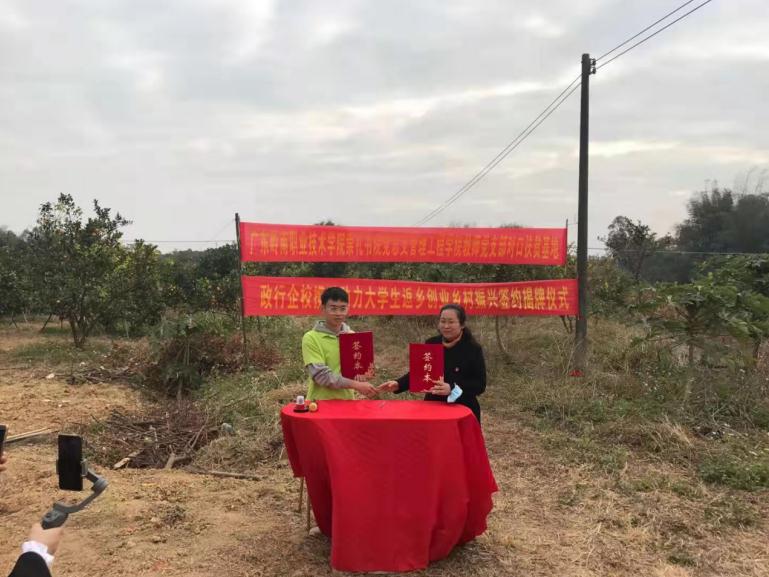 2021年1月5日,政行企校携手助力5+3创业团队返乡创业暨乡村振兴新媒体营销人才培养基地签约揭牌活动在恩平市东成镇云锋农场顺利开展。