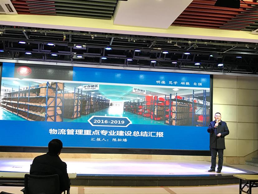 陈松燔老师代表物流管理专业进行校级重点专业—物流管理重点专业建设验收结题工作总结汇报。陈老师从专业三年期建设基本概况开始,着重对标各结题验收指标,在专业特色建设成效、专业资源库建设成效、专业教学团队建设成效、专业社会服务成效、专业对外交流合作成效、专业企业共同开发课程成效、专业教学成果奖教研教改项目建设成效、专业创新创业教育建设成效、专业校内外实践教学条件建设成效、专业学生成长与发展建设成效、专业人才培养质量、社会认可度等方面进行了全面细致的汇报展示。同时,也提出了校级重点专业建设期结束后力争申报立项省级重点或品牌专业的下一步目标和计划。
