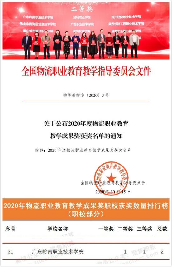 图1物流管理专业荣获2020年度全国物流职业教育教学成果奖两项