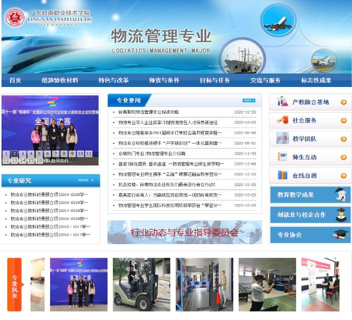 广东岭南职业技术学院管理工程学院物流管理专业网站(网址:http://jg.lnc.edu.cn/index.html)