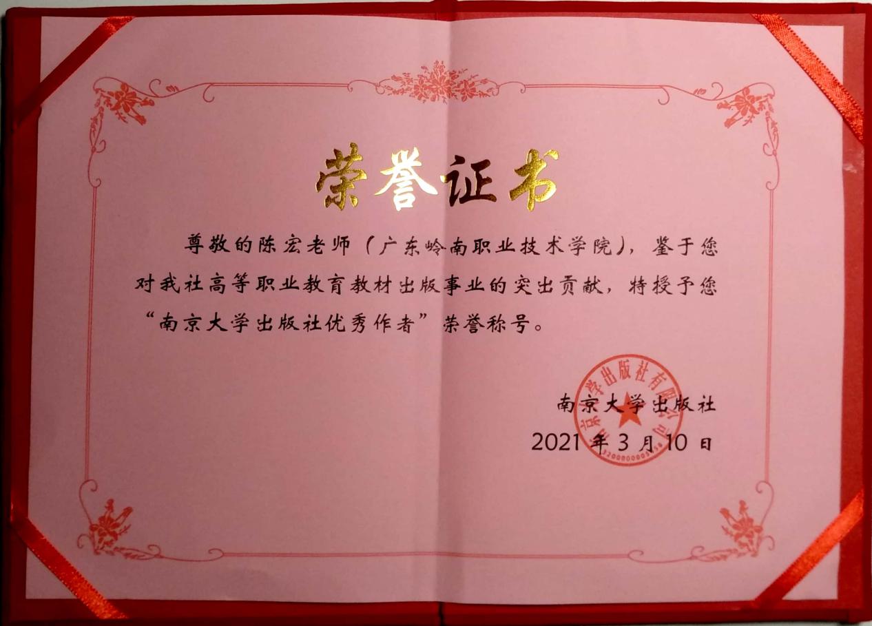 喜报丨管理工程学院中小企业创业与经营专业陈宏老师 荣获“南京大学出版社优秀作者”称号