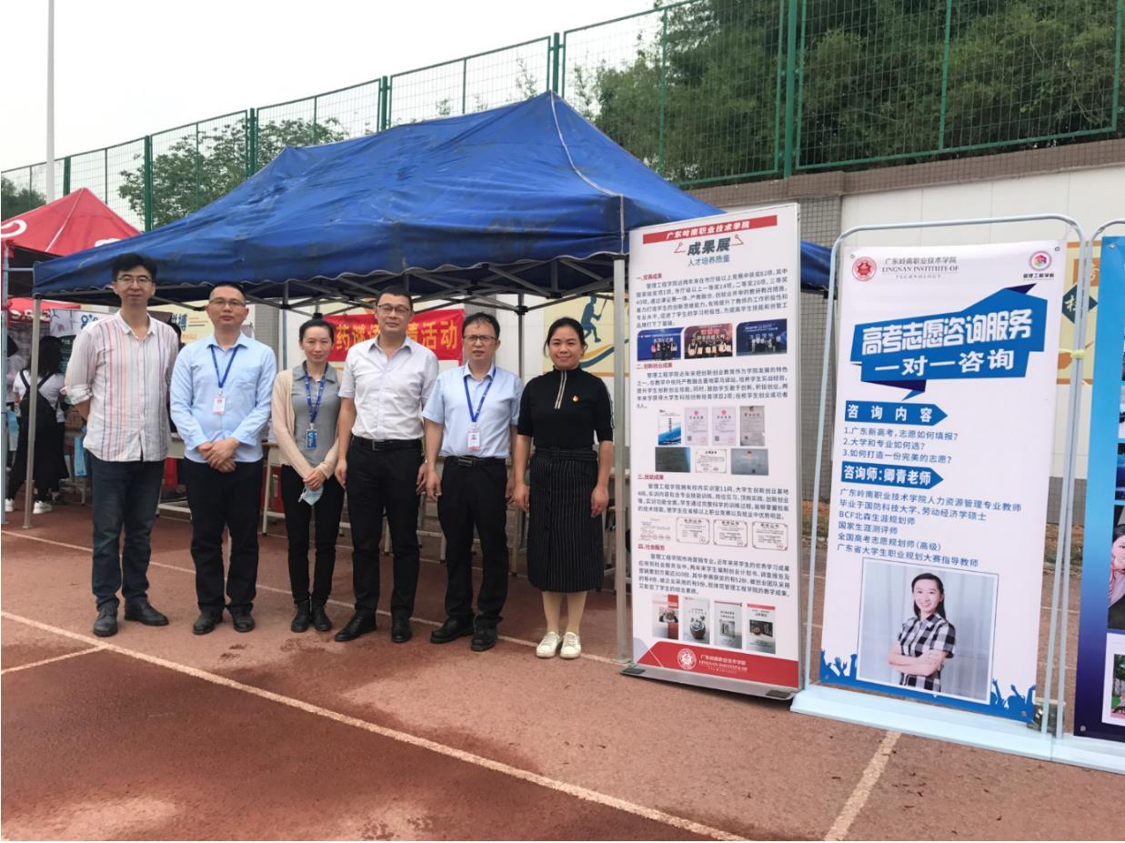 管理工程学院专业宣传团队以报告进中学、专业进中学、招生宣传到中学等形式,针对学生关心的问题以专业科学的态度进行了详细的解答。并且就2021年新高考政策五大变化、志愿填报方法、专业特色介绍、优秀学子宣传、校企合作及成果展示等方式通过现场一对一互动,让学生更全面立体的了解广东岭南职业学院管理工程学院的品牌特色。