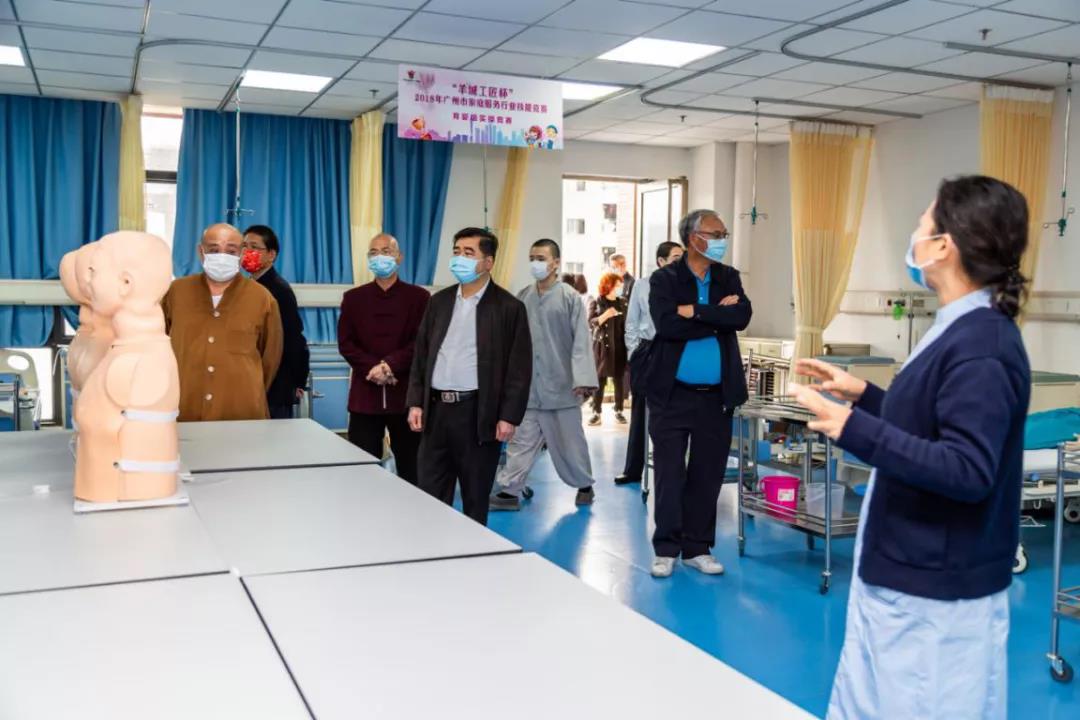2021年2月25日,广东省政协领导程杨主任一行14人走访岭南教育集团。上午10:30分,在贺惠山董事长、劳汉生校长和养生谷冯晖总裁等领导陪同下,政协的嘉宾们来到C栋五楼参观护理与健康学院护理能力训练中心。