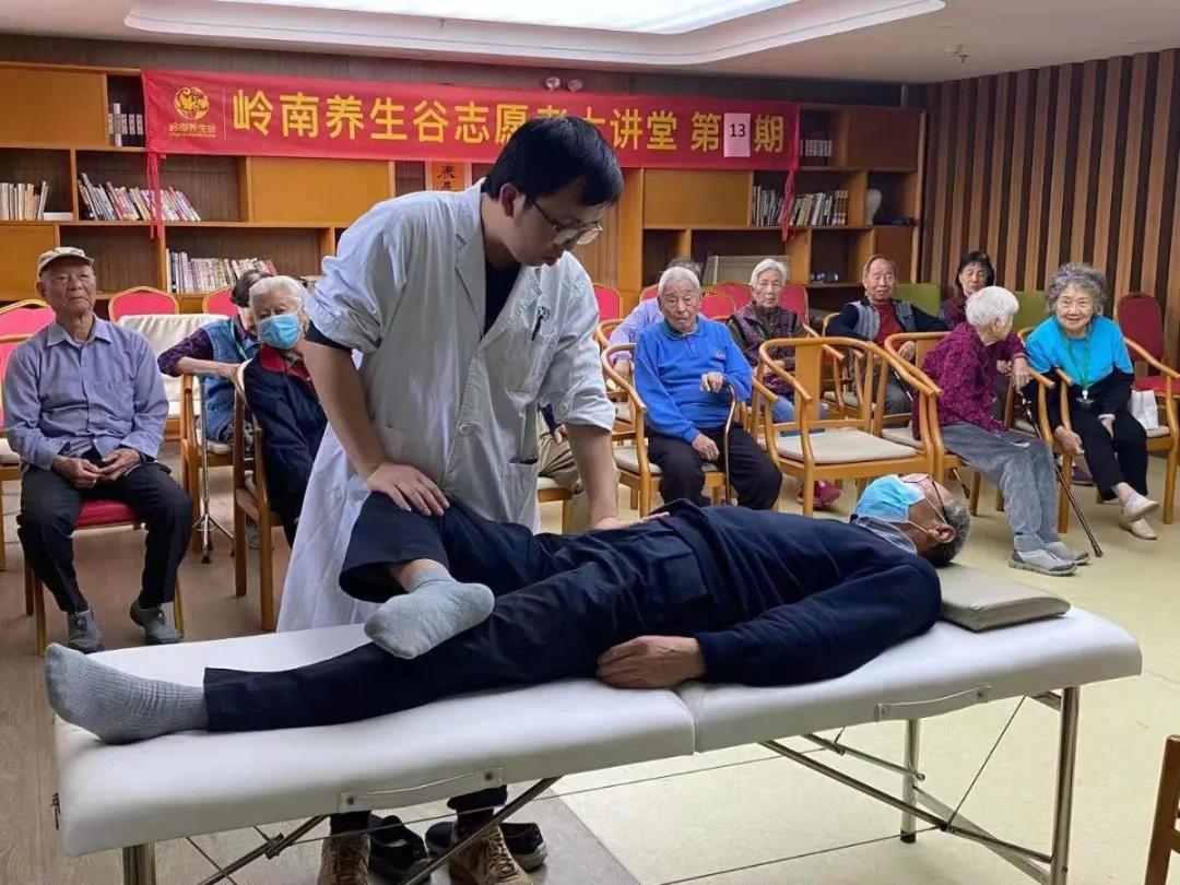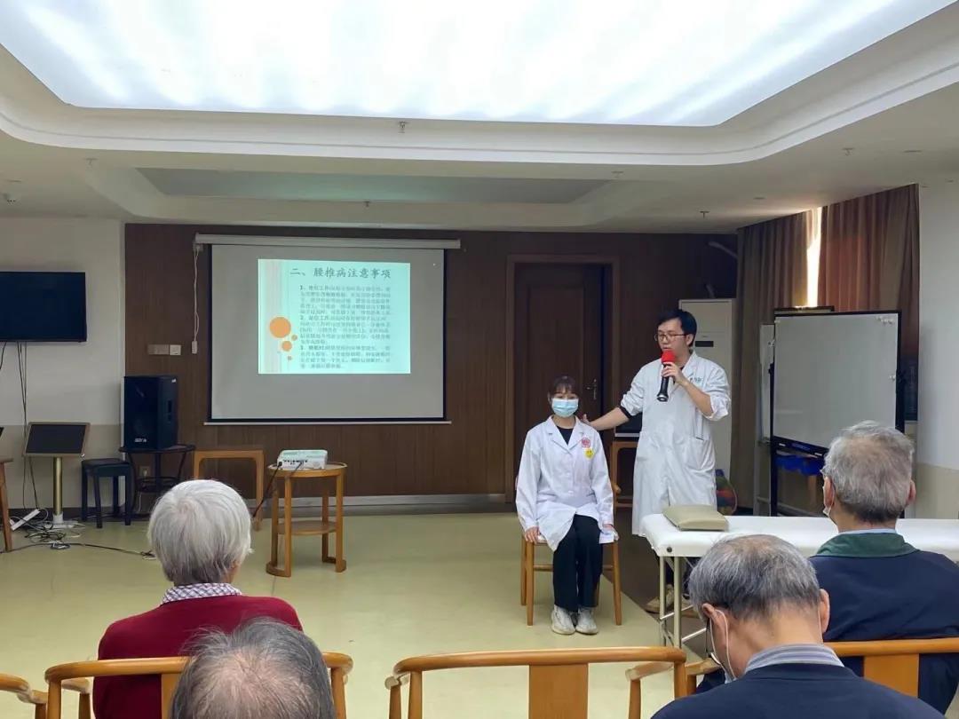 谢泽良医生先向长者们普及了腰椎病的概念和发作的原因,接着分析了腰椎病的发病过程和症状表现,然后展示了一套腰椎病的康复保健方法,最后重点分享了腰椎病发作后该怎么缓解甚至康复,还特别讲解了运动保健方法,受到长者和护工们的欢迎。