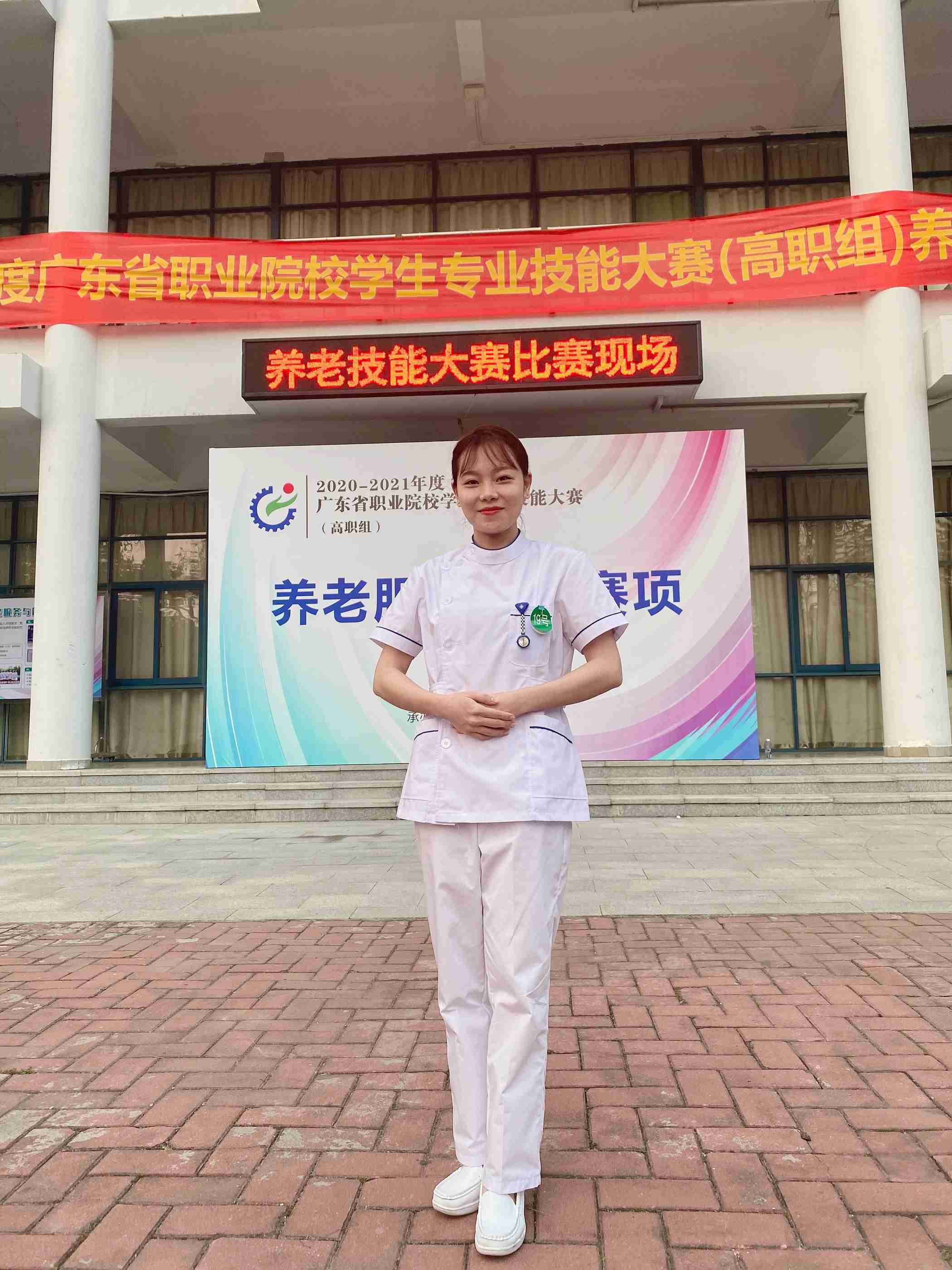 2021年4月23-24日,由广东省教育厅主办的2021年度广东省职业院校学生专业技能大赛(高职组)养老服务技能赛项在顺德职业技术学院成功举办,来自全省的19所高职院校的19位选手参与了此次比赛。2018级护理专业林文佳同学与省内其他兄弟院校的选手同台竞技,不畏强手、表现优秀、战绩喜人,荣获一等奖,取得了历史性突破。