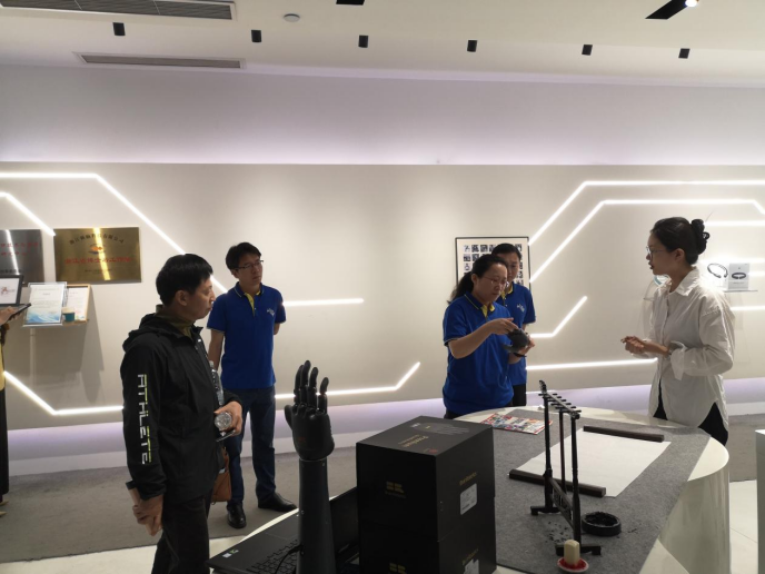 考察期间,强脑科技公司代表详细介绍了公司核心技术与产品体系,分享了在脑机接口技术研发与临床转化方面的最新成果,展示了非侵入式脑机接口技术及其在医疗、教育、康复等领域的创新应用。并详细介绍了已实现量产的多款脑机接口产品,如智能仿生手、智能仿生腿、脑机智能安睡仪与正念舒压系统等,为参访人员描绘了 “脑科学与类脑研究”前沿科技产业的发展蓝图。