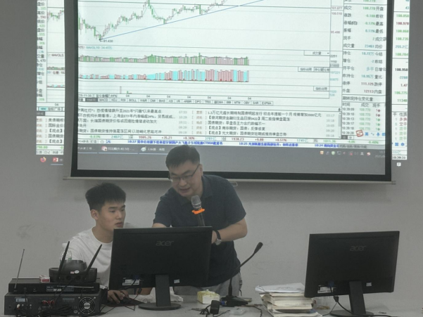 王刚老师主讲的《证券投资分析》课程,紧密结合当日证券行情,进行实时分析。他将理论知识与市场实际紧密结合,通过实战训练,让学生们在真实的场情境中学习证券投资分析技巧,培养学生的实际操作能力和市场洞察力。学生们紧跟老师的思路,积极参与分析和讨论,课堂氛围热烈。