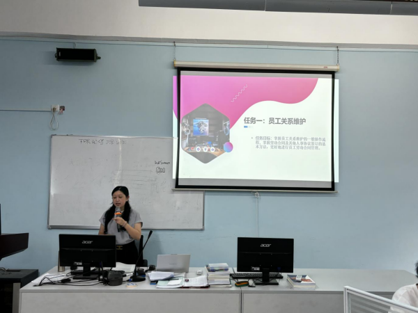 蔡琰玫老师的《1+X 人力资源共享服务》课堂充满活力。她运用快问快答、分组讨论的教学方法,充分调动学生的积极性和主动性。同时,采用积分币激励机制,激发学生的学习热情。在课堂上,学生们积极发言,热烈讨论,形成了良好的互动氛围,有效提升了学生的团队协作能力和知识运用能力。