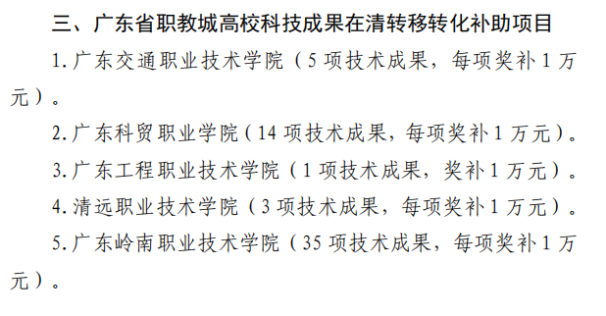 此次立项项目覆盖科产教融合平台建设、人才培养、科技成果转化、就业服务、课程共建等多个领域,包含《岭南产教融合公共实践中心》《中高职“3+2”贯通人才培养奖补项目《省职教城高校就业驿站AI赋能就业服务项目》《省职教城高校科技成果在清转移转化补助项目》等课题。其中,《岭南产教融合公共实践中心》已累计建设实训课程536个、编写实训教材37本、开展实训13000人次、实训总学时量达289440学时、提供横向服务170余项,获得地市级以上成果数量361项(其中国家级6项),构建了具有岭南职院特色的产教融合服务模式,有效推动了区域经济社会发展。同时,学校积极推动科技成果在清远落地转化,已完成35项专利转移转化,其中2项专利技术应用于广东佳纳能源科技有限公司、世捷包装制品(清远)有限公司,经科技成果评价达到“国际先进水平”,荣获“创新清远”科技进步奖一等奖、二等奖荣誉,助力清远本地企业实现技术升级与产业竞争力提升,形成了“高校研发、本地转化、产业升级”的良性循环。
