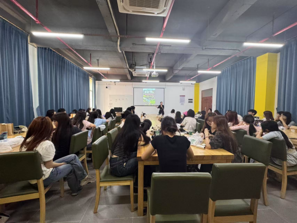 资深主播培训总监刘晓琳老师,现场示范直播行业如何巧妙化解禁语,也通过现场模拟直播带货场景,指导与分析学生在模拟直播中整体话术节奏以及表情管理,并揭秘让观众“3秒停滑”的镜头表现力法则。晓琳老师生动的分享,深深吸引了同学们的目光和热烈回应。