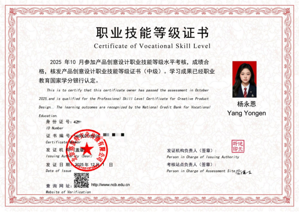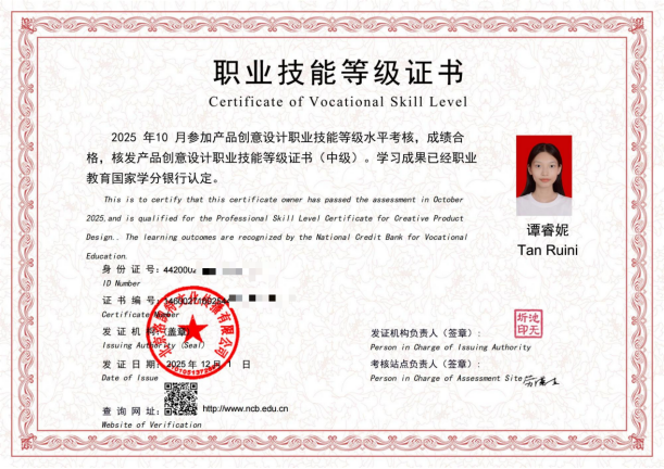 服装设计专业学生2025年度“1+X”产品创意设计职业技能等级证书考试通过率百分百!