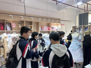 清新区三中的同学们走进我校,开展研学参观活动。当同学们踏入服装陈列室,瞬间被眼前的服装作品吸引,精致的剪裁、独特的设计、丰富的款式,让大家目不暇接,不时发出阵阵惊叹,纷纷拿出手机拍照记录,眼神里满是好奇与向往。