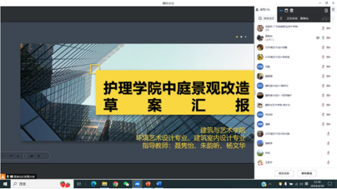 4月30日,三个小组分别向护理与健康学院“南丁格尔广场”景观改造项目的负责人黄珊珊副院长、王思平副院长、曾银珠副书记及林老师等汇报了本次改造的草案。黄珊珊副院长对项目设计组同学及指导老师所付出的努力和所呈现的设计方案给予了充分的肯定,她表示,三个方案都有可取之处,希望看到下一步更完善的方案。