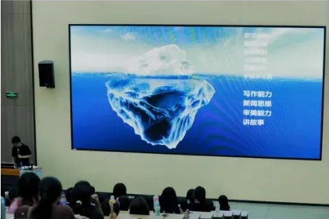 最后,毛乘胜老师压轴出场。毛老师结合实际案例,生动地阐述了传媒人才在智媒体时代应具备的技能和素养,从数据分析能力到创新思维,从团队协作精神到快速学习能力,每个方面都讲解得细致入微。同学们全神贯注地聆听着毛老师的讲解,不时低头记录着重点内容。他们仿佛在毛老师的话语中看到了未来的方向,心中充满了对未来的憧憬和奋斗的动力。