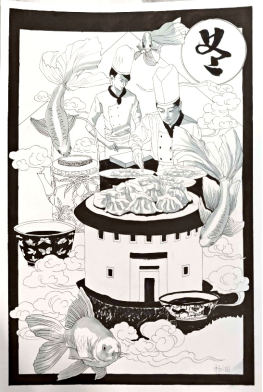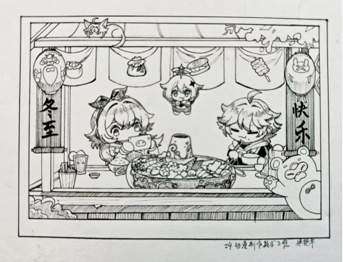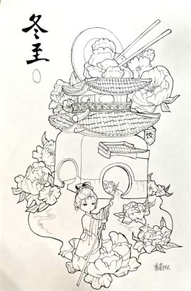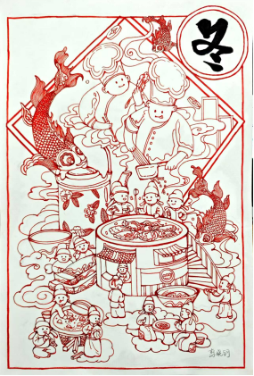 “求木之长者,必固其根本;欲流之远者,必浚其泉源。”习近平总书记指出,中华优秀传统文化是中华民族的精神命脉,是涵养社会主义核心价值观的重要源泉,也是我们在世界文化激荡中站稳脚跟的坚实根基。中华文化源远流长,二十四节气便是其中璀璨的明珠,蕴含着古人对自然规律的深刻洞察和敬畏之情。在综合作业的绘制中,把对冬至的美好祝福通过手绘的方式描绘出来,用专业手法来表达传统韵味的冬至主题,领略了它承载的美好期许与浓浓的家国情怀。