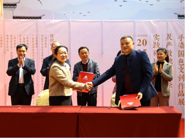 3月20日,由清远市文学艺术界联合会、中共佛冈县委宣传部指导,广东岭南职业技术学院、广东雅集文化旅游投资有限公司联合主办的“草木莘莘•伊染风华——2025尹春洁手染国色文创作品展及产教融合教学实践研讨活动”在佛冈聚龙湾温泉雅集文旅中心隆重举行。