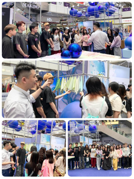 第二站:受邀到广州国际轻纺城参加“2025S/S春夏中国纺织面辅料流行趋势——广州国际轻纺城专场发布会”。在广州国际轻纺城,我们受到招商部谢旋经理、贸促部连天聪主任的接待。连主任为同学们授课,内容为2025S/S春夏中国纺织面辅料流行趋势。发布会在近千平米的静态展现场,由国内1000余家知名企业中国流行面料入围产品、轻纺城商户的代表性面料、轻纺城最新辅料发布区共同组成。