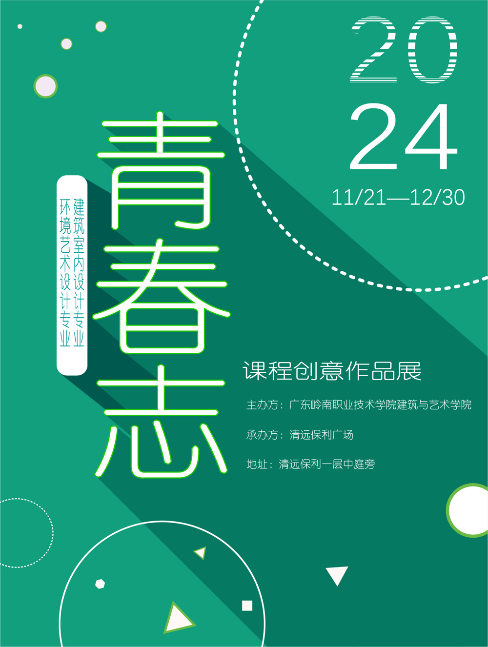 青春志——环境艺术设计、建筑室内设计专业课程创意第一期作品展 来源: 发布时间:2024-11-19 12:01:28 浏览次数: 次 【字体:小 大】 课程创意作品展主办方:广东岭南职业技术学院建筑与艺术学院承办方:清远保利广场地址:清远保利一层中庭旁时间:2024 11/21-12/30专业:建筑室内设计专业 环境艺术设计专业欢迎同学们前来观看! 学生优秀习作 终审:王丽莹 分享到: 【打印正文】