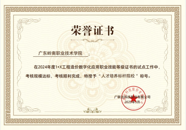 【重大喜讯】工程造价专业学子100%通过数字化应用职业技能等级证书(中级)考试,我校荣获“人才培养标杆院校”牌匾!