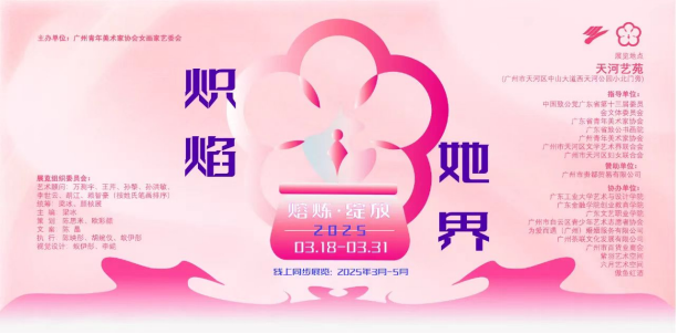 2025年3月18日,广州青年美术家协会女画家艺委会成立仪式暨“炽焰·她界——熔炼·绽放”当代女性艺术家美术作品展在广州天河艺苑举行。本次活动由中国致公党广东省第十三届委员会文体委员会、广东省青年美术家协会、广东省致公书画院、广州青年美术家协会、广州市天河区文学艺术界联合会、广州市天河区妇女联合会等六家单位指导,广州青年美术家协会女画家艺委会主办,旨在搭建女性艺术家的专业交流平台,推动女性视角在当代艺术中的多元表达与创新实践。