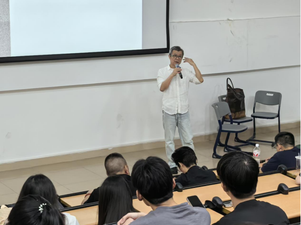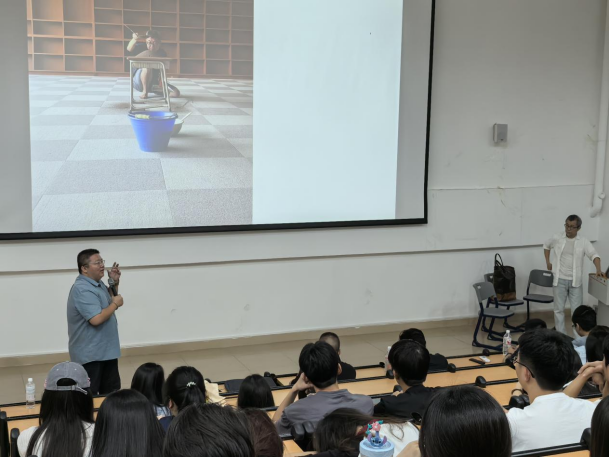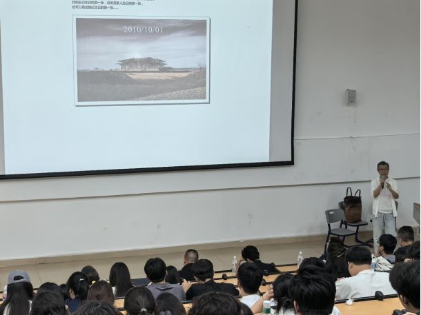 5月27日下午,广州美术学院跨媒体艺术学院院长冯峰教授莅临我校,在博雅 D102 教室带来了一场题为 “共生:历史与未来” 的精彩讲座。建筑与艺术学院院长赵春齐、专业建设委员会主任贺克、副院长胡林林、专业带头人尹春洁及百余名师生齐聚现场,教室座无虚席,现场氛围热烈。