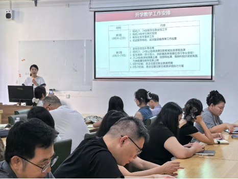 刘跃飞副书记、副院长通报了2025年招生工作进展及新学期迎新筹备情况。她表示,目前各专业新生联络情况整体良好,强调全体教职工要时刻牢记育人初心,严守师德规范,以饱满的热情、高度的责任感和优良的师风展现学院良好形象。学院对后续工作提出明确要求:一方面要扎实做好新生报到各项保障工作;另一方面,全体教师积极参与迎新工作,在服务新生的过程中以身作则,传递关爱与正能量;要求辅导员深度融入教研室工作,加强沟通协作,形成育人合力。