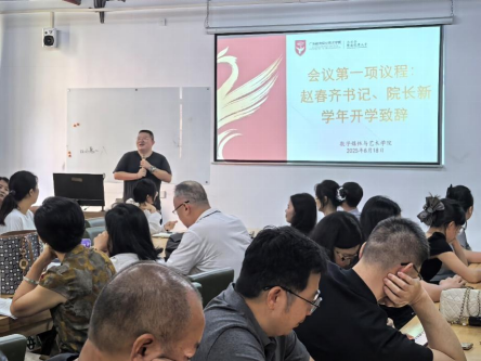 夏末秋初,万象更新。2025年8月18日,数字媒体与艺术学院(笃学书院)隆重召开2025-2026学年第一学期开学工作会议。本次会议以“齐心协力,从心出发” 为主题,由刘跃飞副书记、副院长主持,精准锚定新学期发展方向,凝聚全体教职工共识。