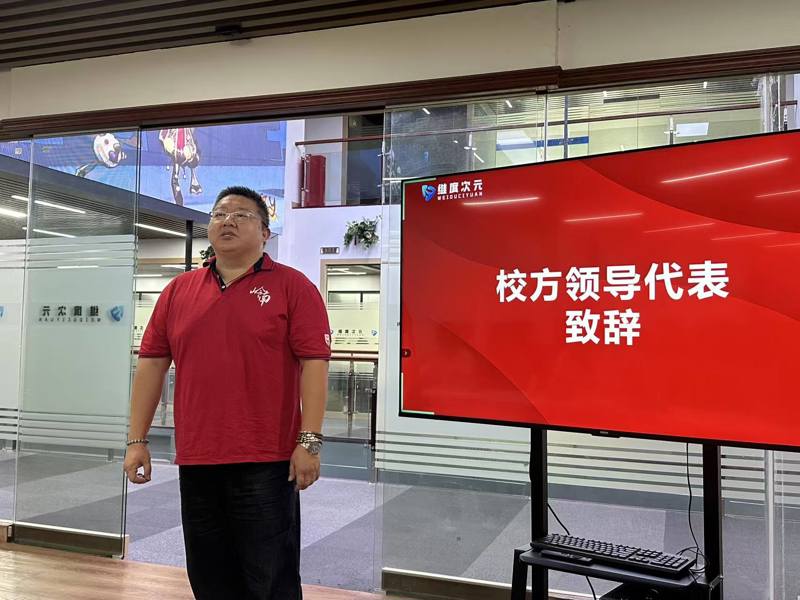 学院始终坚持以市场需求为导向,致力于培养具备创新精神和实战能力的数字艺术人才。而维度作为一家专注于VR/AR(虚拟现实/增强现实)、三维可视化、数字孪生等技术研发与应用的高新技术企业,其业务领域与学院数字媒体技术、动漫制作技术、游戏设计等专业高度契合。学院一批优秀学子,在学院老师的带领下进入维度开展为期两个月的企业实践活动。此次活动旨在将课堂理论知识与行业前沿实践相结合,为学生搭建一个“学以致用、用以促学”的高质量平台。院长赵春齐为岭南学子们加油打气,勉励同学们砥砺前行。