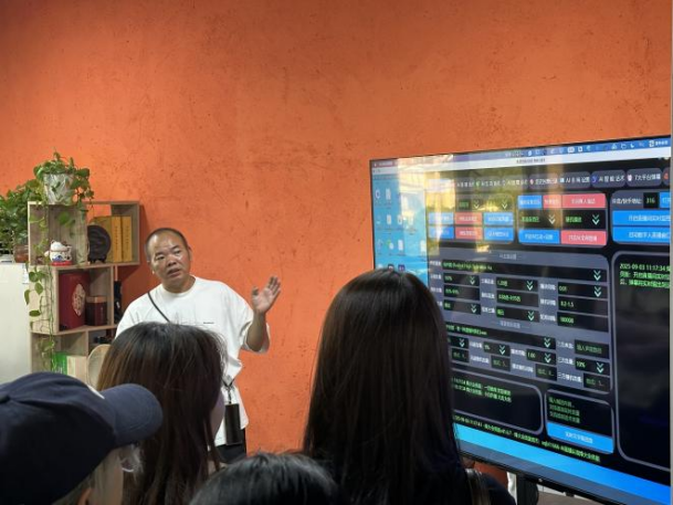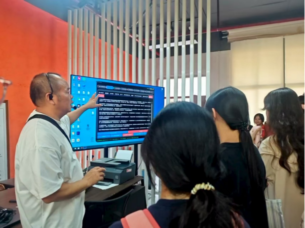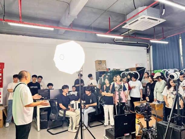 不少同学一边参观一边与老师积极互动,提出心里的疑问。"非播音专业能否成为优秀主播" "我们需要重点学习哪些软件"......毛老师逐一进行了解答。毛老师表示,“声音条件只是基础,更重要的是内容策划能力、产品理解力和观众共情力。除了专业的剪辑软件,更要掌握数据分析工具和用户研究工具”。最后,毛乘胜老师给大一的学子们提出了几点建议:大家从大一开始就要有意识地建立自己的作品库,哪怕只是一个简单的开箱视频,也要用专业标准来要求自己。同时更要时刻保持对行业风向的敏感度,定期做竞品分析,孜孜不倦提升自身的专业技能,争取活跃在专业的第一阵地。