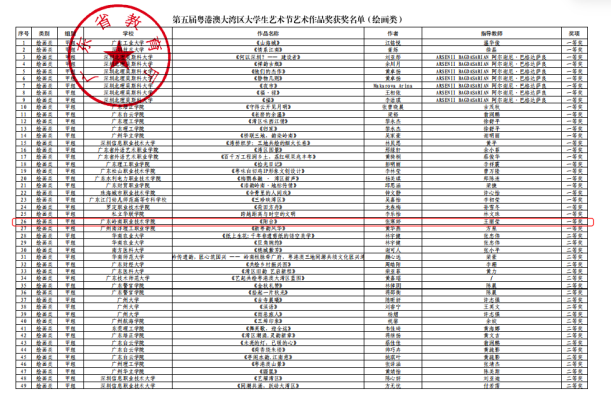 第五届粤港澳大湾区大学生艺术节艺术作品奖获奖名单