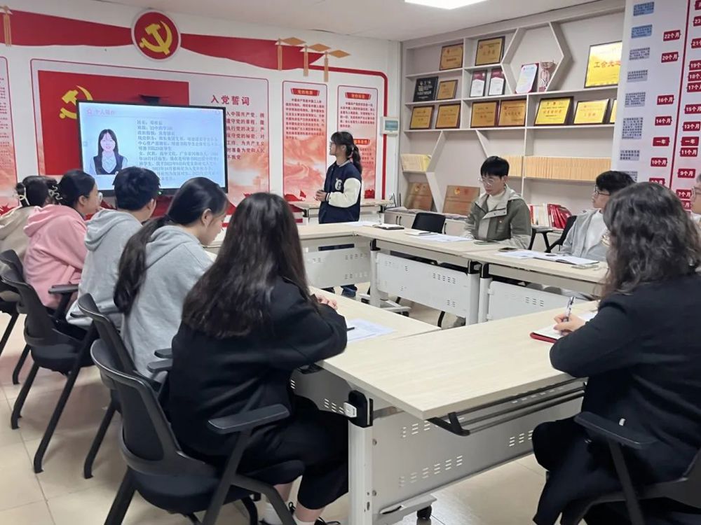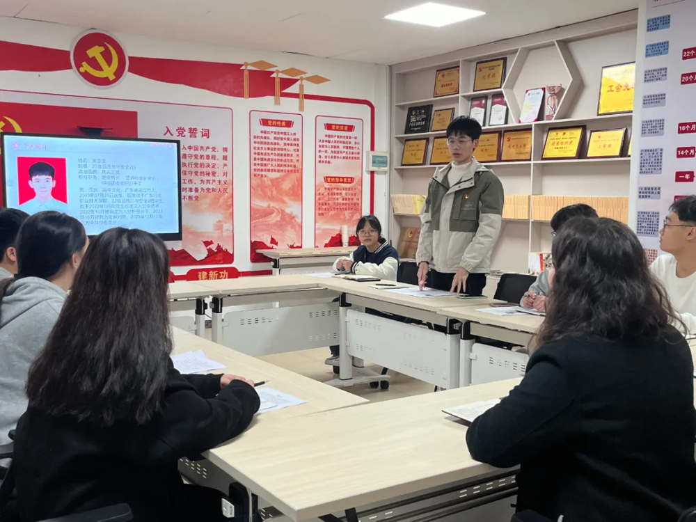 会议开始九名预备党员依次进行自我介绍,每位同志都有着各种各样的技能特长。他们是经过党支部层层筛选,层层考验,挑选出来的精英,每位学生党员都是新时代最鲜活的热血,洋溢着青春与活力。