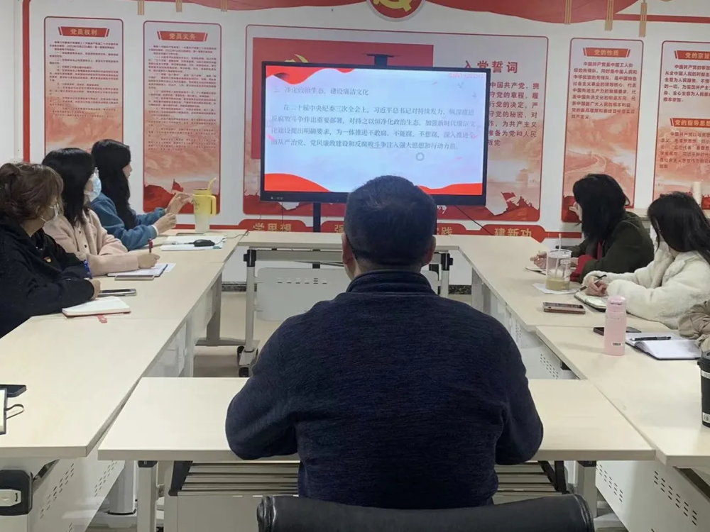 大会开始,全体党员同志进行了第一议题的学习。学习领会习近平总书记在第二十届中央纪律检查委员会第三次全体会议上的重要讲话精神,深刻领悟习近平总书记关于党的自我革命的重要思想、净化政治生态,建设廉洁文化,对党风廉政建设和反腐败斗争作出了新的战略部署,提出了新的更高要求,为开创党的自我革命新局面作出不懈努力。