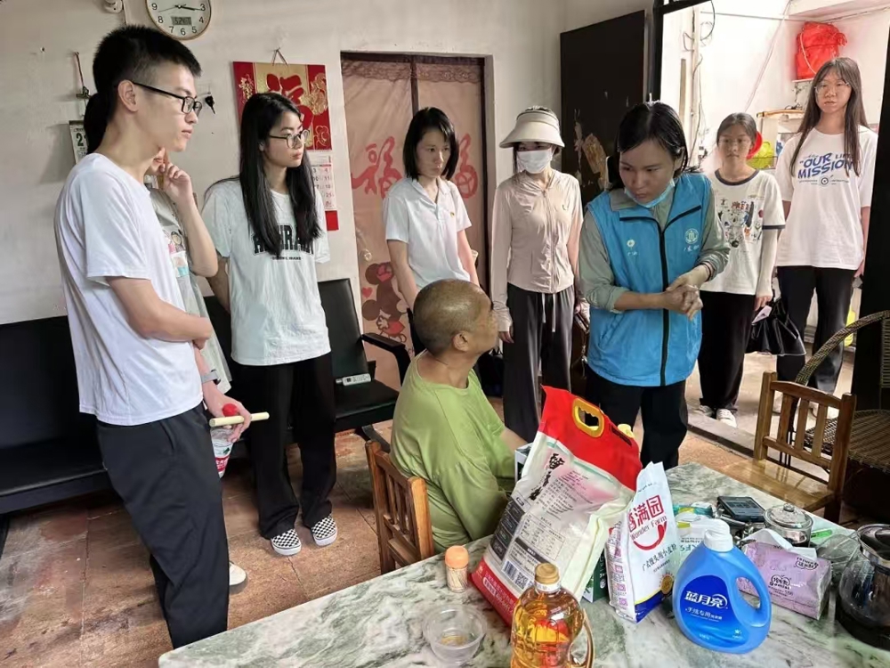 明德书院师生联合党支部慰问活动由教师党员带队,分为五小队前往慰问对象家中,为他们送去了米、油、牛奶等慰问品,并与他们亲切交谈,聊起家常。教师党员们认真询问了慰问对象最近的身体状况和日常生活情况,耐心倾听他们的真实心声,并鼓励他们保持积极乐观的心态。