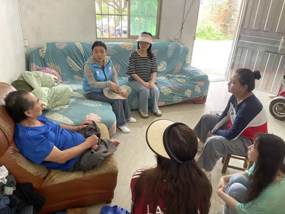 慰问当天,明德书院师生联合党支部带着满满的关怀与尊重,走进了平塘村残疾人家庭。此行目的,不仅仅是为了递送慰问物资,更是为了传递深情厚意。教师党员们细致地询问了他们的日常生活、所面临的困难以及未来的计划。学生党员则为其进行艾灸、帮忙打扫卫生等。通过倾听和理解,师生们与残疾人家庭之间建立了深厚的信任和友谊。