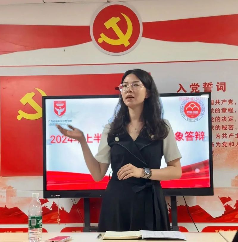 明德书院师生联合党支部书记陈飞莹提出,各位发展对象在各个方面还有可提升的地方。在理论知识方面,她希望各位发展对象加强对党的方针政策和理论知识的学习,同时,加强与教师和党组织的联系,多向教师汇报自身的思想和工作,争取得到更多的指导和帮助。在思想引领方面,作为发展对象和预备党员,更要发挥好自己的作用,成为班级和部门的引领者。最后,她希望各位发展对象们能认真反思,修正不足,加强自我提升,争取在各个方面都取得更好的成绩。