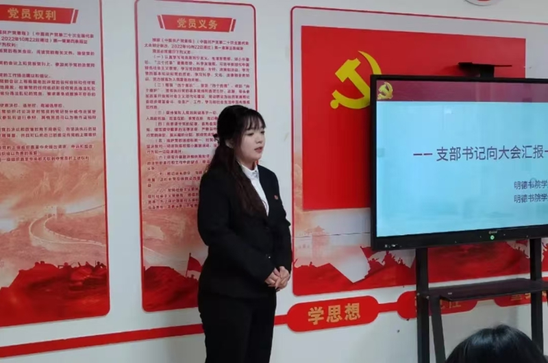 为进一步加强学生党支部建设,完善党员队伍,增强后备力量,为党组织补充新鲜血液,近日,明德书院学生第一党支部召开2024年下半年预备党员转正大会。医学应用技术学院党总支书记周云同志,明德书院学生第一党支部书记邢琰以及支部全体教师党员和在校学生党员参与会议。