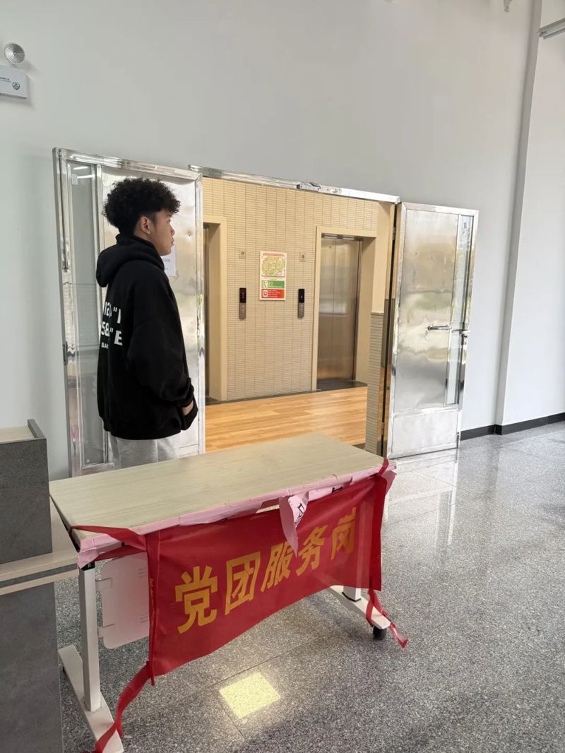 党团精神不仅是历史的传承,更是激励着一代又一代青年学子奋勇前行的灯塔。党团服务岗位作为校园精神文明建设的先锋队,始终将规范日常行为视为己任。因此在11号楼宿舍区设立党团服务岗位,他们站在党团服务岗位上,以实际行动践行初心与使命,用规范的日常行为为画笔,共绘优良校风的美丽画卷。