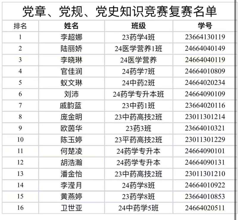 深入领会党史,稳固信仰基石|党章党规党史知识竞赛晋级决赛名单