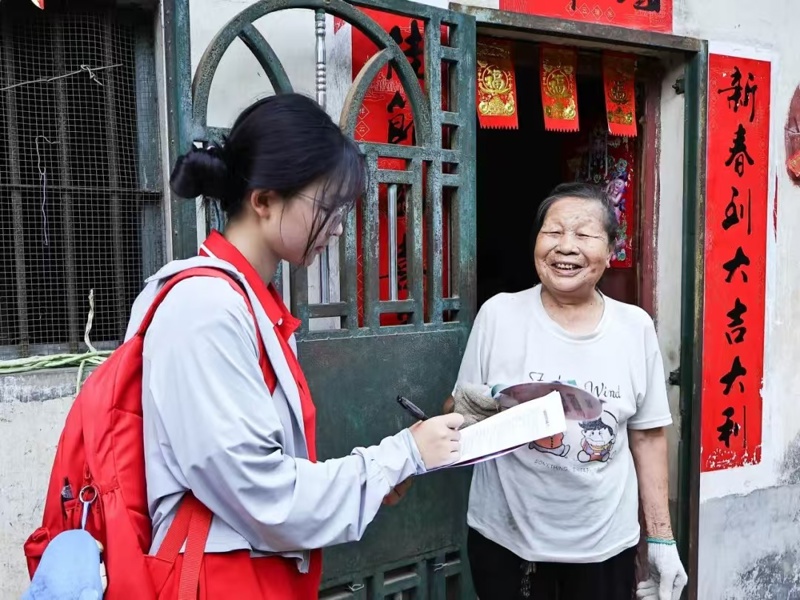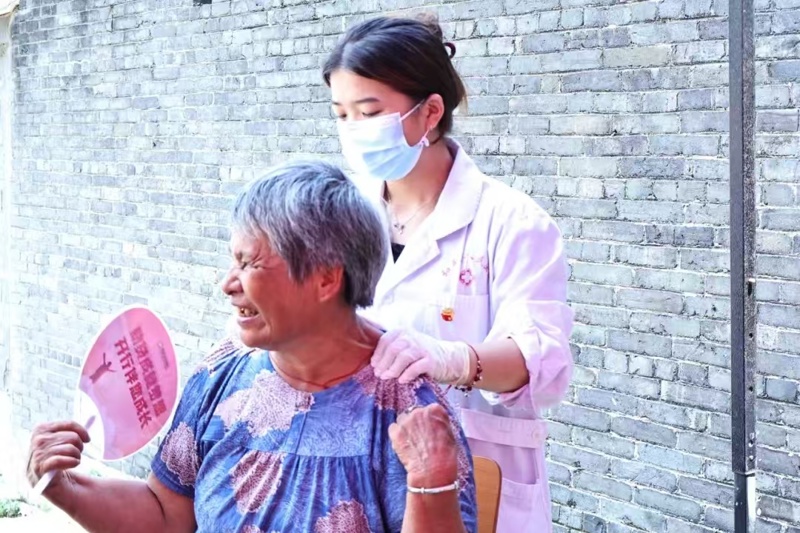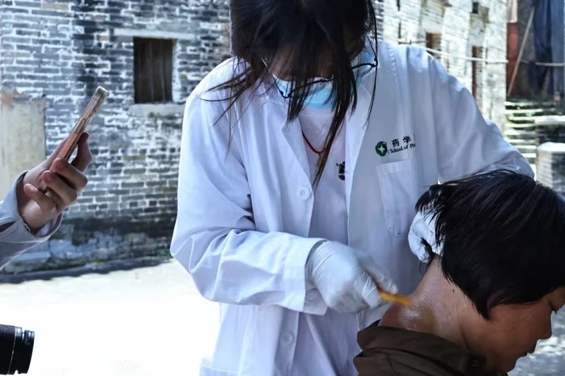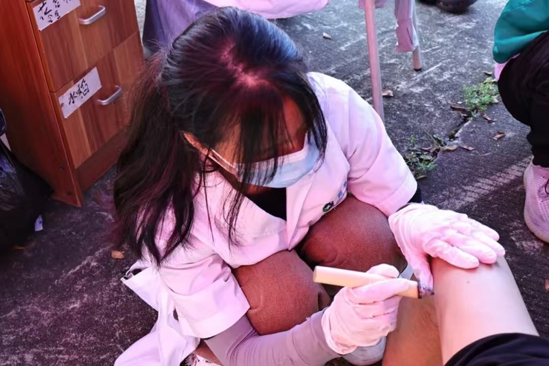 在义诊现场,学生们认真为居民们测量血压,推拿、按摩、艾灸、刮痧等传统中医疗法。义诊不仅传播了中医药健康文化、提升居民健康养生意识,还让当地居民在“家门口”就能体验到中医理疗服务,让居民更加了解自身身体状况与注重生活饮食作息习惯。