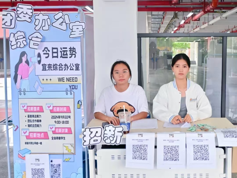 团学各部门齐聚招新现场,涵盖艺术团、体育部、事务中心、宣传部等多个部门。招新摊位星罗棋布,为萌新们精心准备的小礼物早早摆好到位,花样十足的招新海报、精美用心的“宣传”手册、各种别样的“吆喝手段”,学长学姐们热情耐心地为2024级新同学介绍各部门的工作职责和招新要求,大家交流互动、气氛热烈。