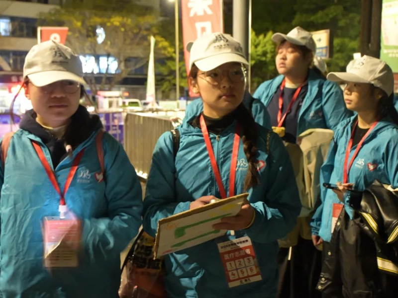 全岗覆盖,零失误护航。从凌晨4点的物资调配到深夜的赛道清理,明德书院的志愿者们活跃在检录、医疗、指引、补给等各个岗位,累计服务时长超十小时,实现赛事服务“零投诉”!