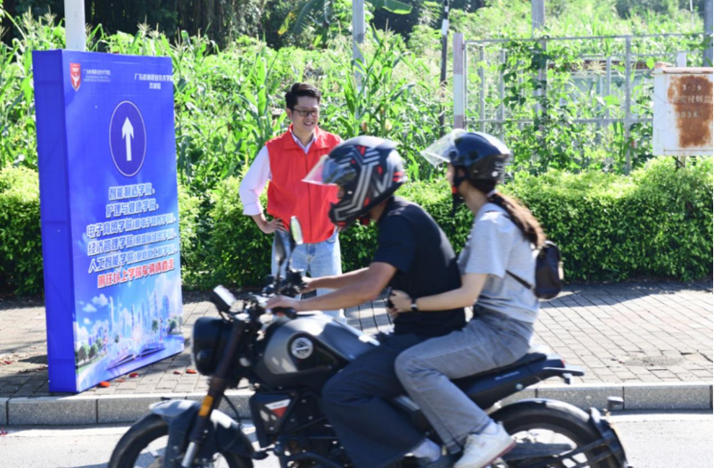 30日迎新当天,常务副院长黄琪,教师李荣国、刘代军、黄志刘身着红马甲,准时抵达各个志愿服务点位,以最饱满的热情协助参与交通指挥。尽管天气酷热难耐,但是在常务副院长黄琪的带领下,学院教师不辞辛苦,始终奋战在一线,全力以赴做好交通指挥,确保车辆有序通行,避免拥堵。