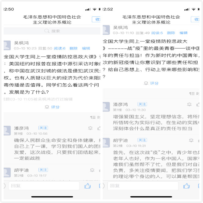 观看结束后,马克思主义学院教师通过腾讯课堂、QQ群课堂、超星平台等平台,组织学生在线交流、讨论、互动,分享彼此的听课感受,畅谈自己对于战“疫”的思考与感悟。