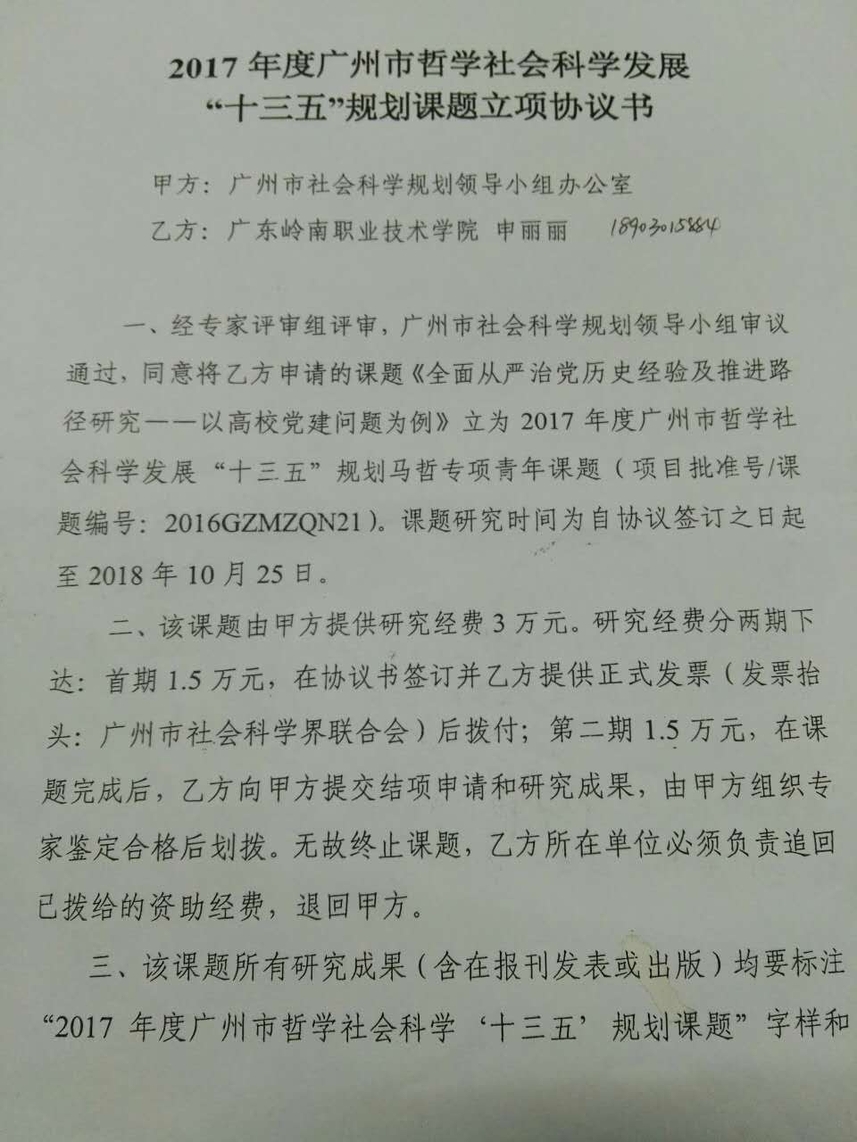 喜报|思政部申丽丽老师广州市哲学社会科学发展“十三五”规划课题成功立项 来源: 发布时间:2018-01-15 14:25:53 浏览次数: 次 【字体:小 大】 经过广州市社会科学规划领导小组专家评审组评审,思政部申丽丽老师申请的题为《全面从严治党历史经验及推进路径研究——以高校党建问题为例》课题被立为2017年度广州市哲学社会科学发展“十三五”规划马哲专项青年课题。 分享到: 【打印正文】